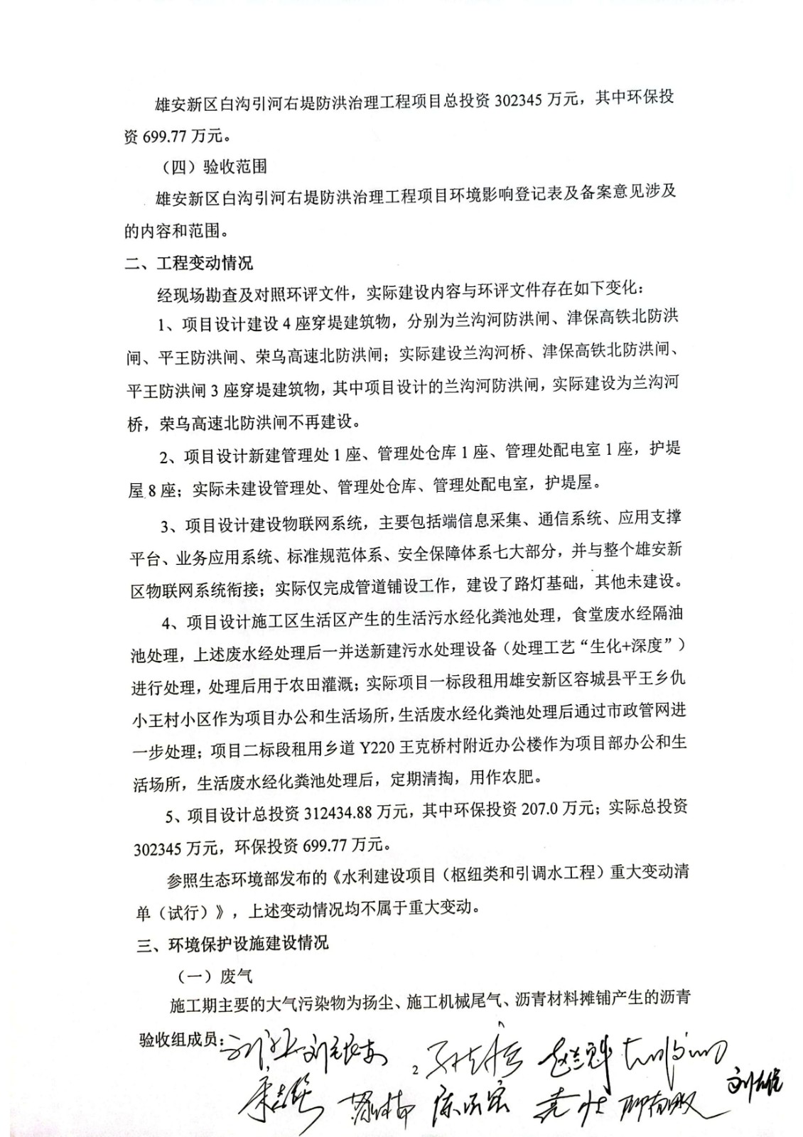 雄安新區白溝引河右堤防洪治理工程項目竣工環境保護驗收意見
